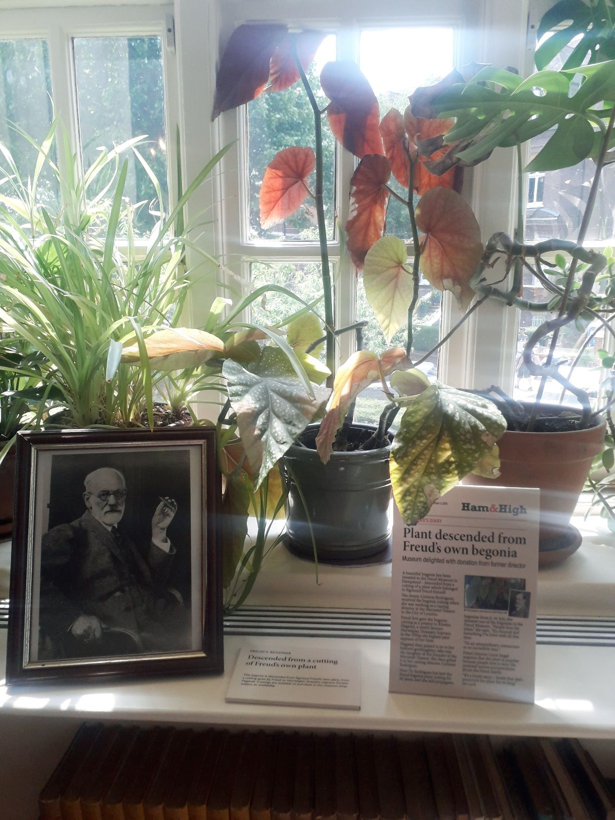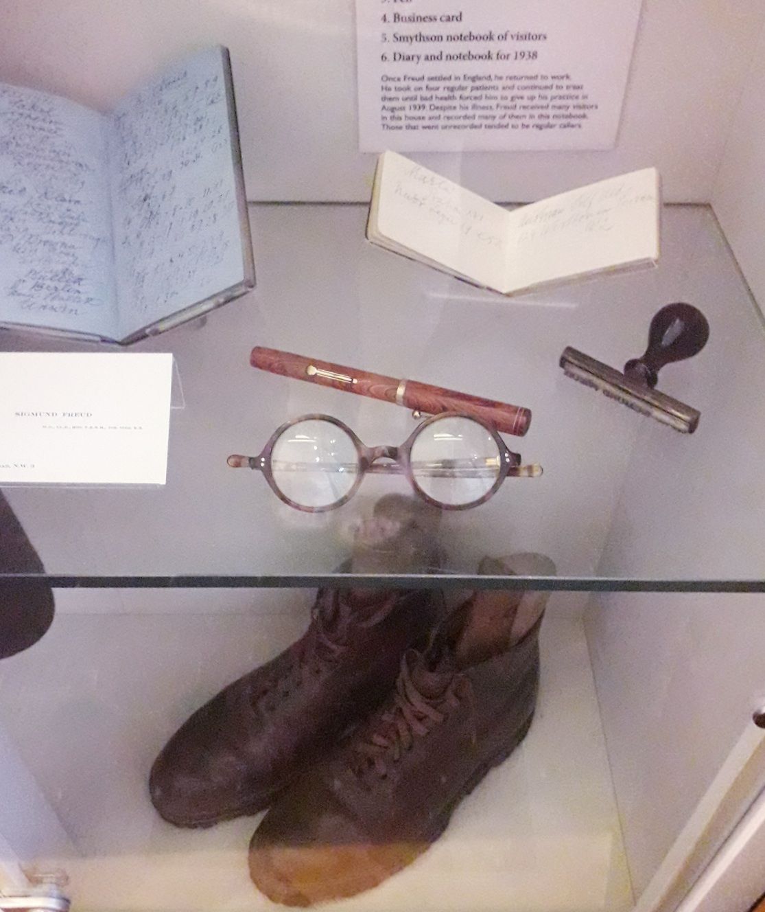Me, haunting the Charles Dickens Museum. Dickens' bed. Samuel Johnson's attic and writing desk. Charlotte Bronte's bonnet. Sigmund Freud's begonia. Sigmund Freud's glasses, pen, and boots. Anna Freud's golden thimble and weaving. Bronte dining room. Darwin's greenhouse.